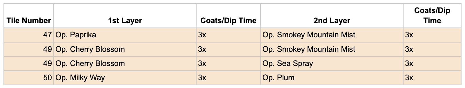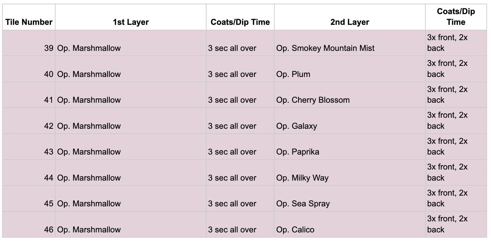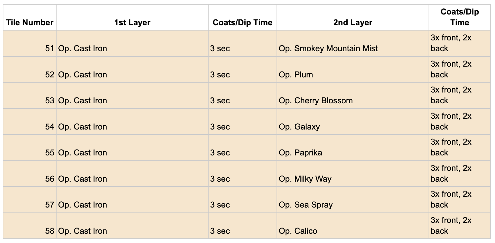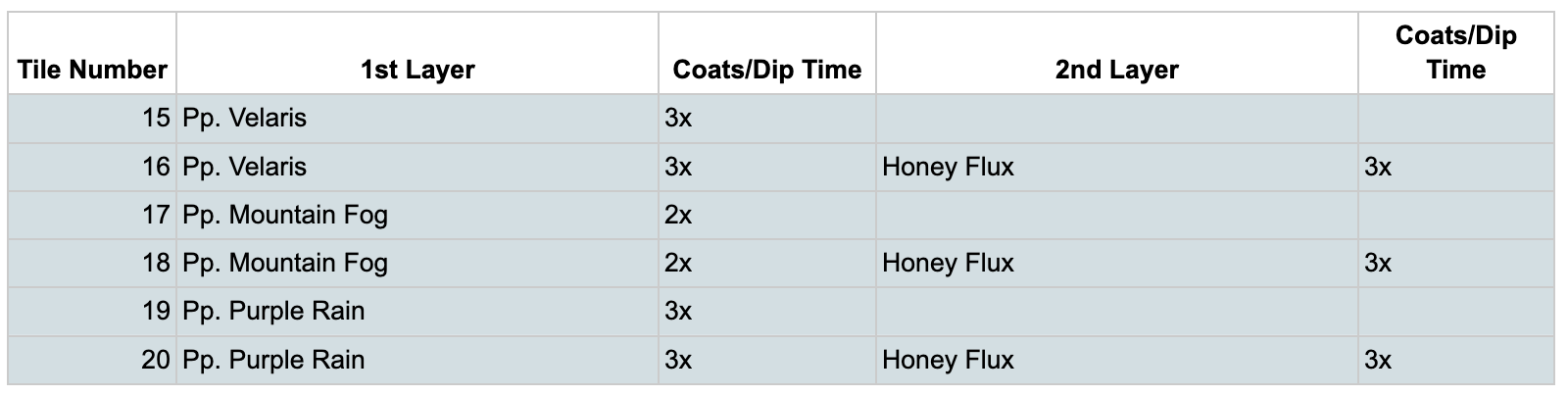In the screenshots of the glazes, “Op.” refers to Opulence Glazes, and “Pp.” refers to Penguin Pottery.